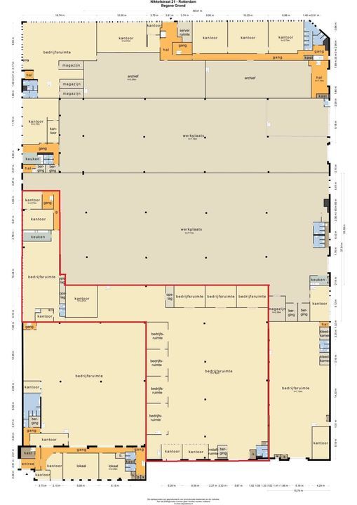 Het pand aan de Nikkelstraat 3 te Rotterdam betreft een functioneel bedrijfsobject met een ruime bedrijfshal en bijbehorende kantoor- en secundaire ruimten. De totale oppervlakte bedraagt circa 2.186 m² v.v.o., verdeeld over circa 1.571 m² bedrijfsruimte op de begane grond en circa 615 m² kantoor- en secundaire ruimte verdeeld over de begane grond en eerste verdieping.