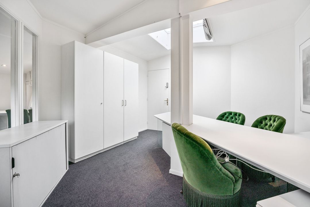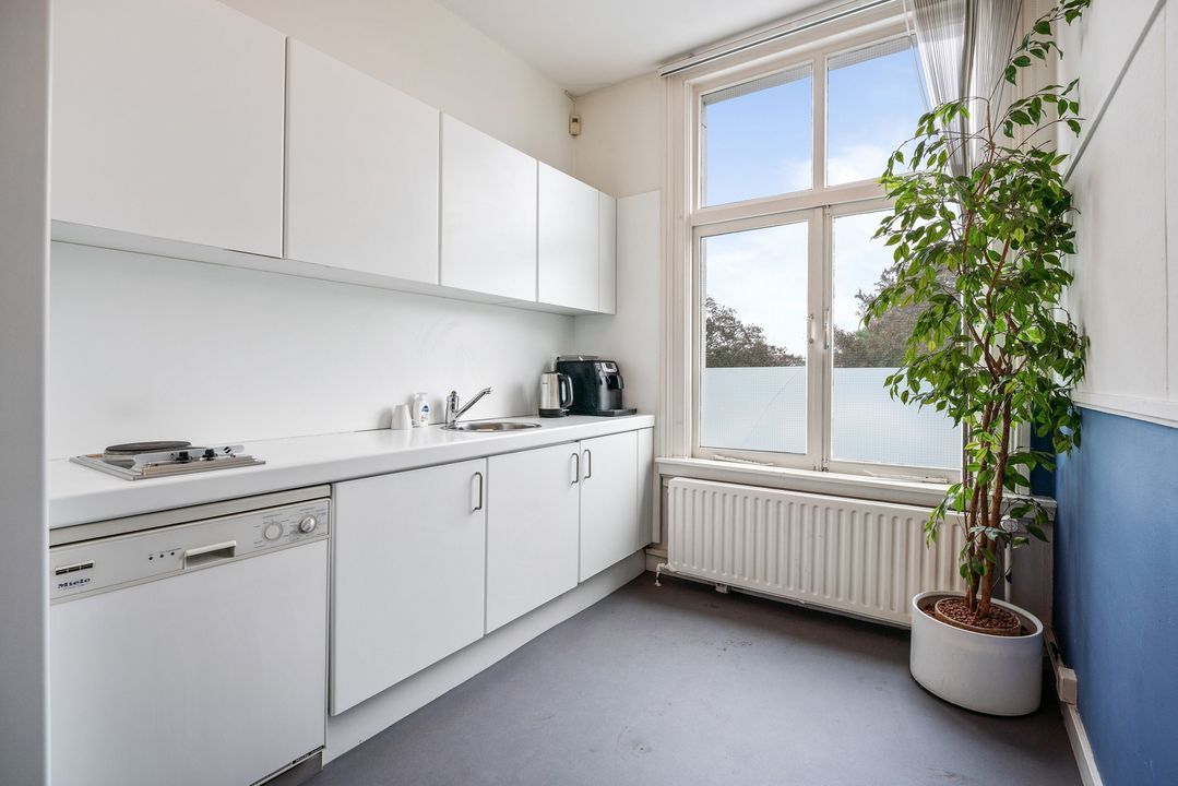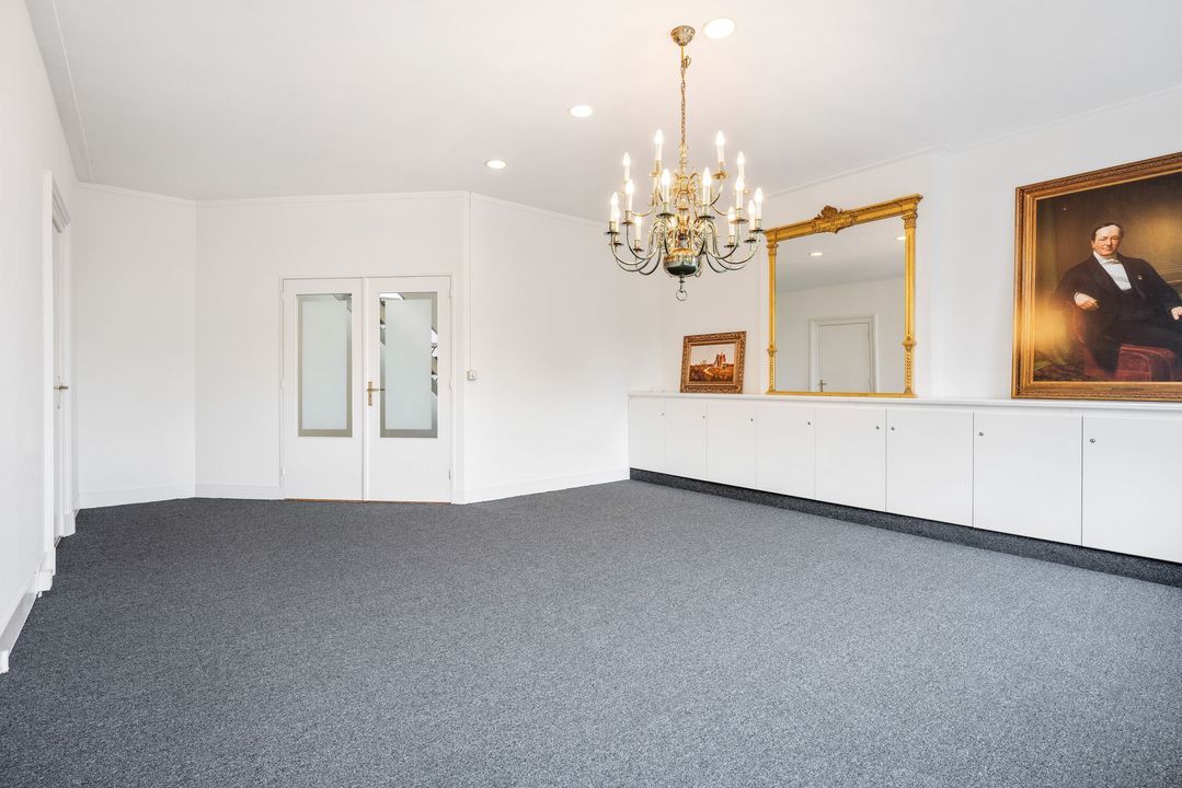 Bij binnenkomst in de ontvangsthal toont het gebouw zicht direct als indrukwekkend monument. het markante pand geniet van de status als rijksmonument. De zeer royale en luxe entree is voorzien van veel marmer en hoge houten lambrisering geven het geheel een chique en karakteristieke uitstraling. Huurders mogen in overleg met de verhuurder gebruik maken van de unieke spreekkamer op de begane grond, welke beschikt over een gestrekt uitzicht op de tuin.