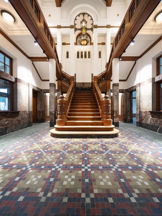 Bij binnenkomst in de ontvangsthal, toont het gebouw zich direct als indrukwekkend monument. Op de begane grond en op de eerste verdieping, beiden direct ontsloten door deze hal, bevinden zich historische kantoor- en vergadervertrekken, sommige zelfs met origineel interieur. De tweede en derde verdieping hebben een flexibele indeling van verschillende kantoorunits, kleine vergaderruimtes en belunits met een meer eigentijds karakter en sfeer. De monumentale Commissarissenkamer is op aanvraag beschikbaar voor vergaderingen. Via het souterrain is de ruime binnentuin bereikbaar.