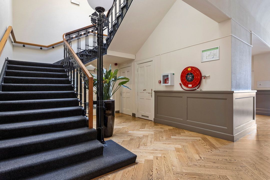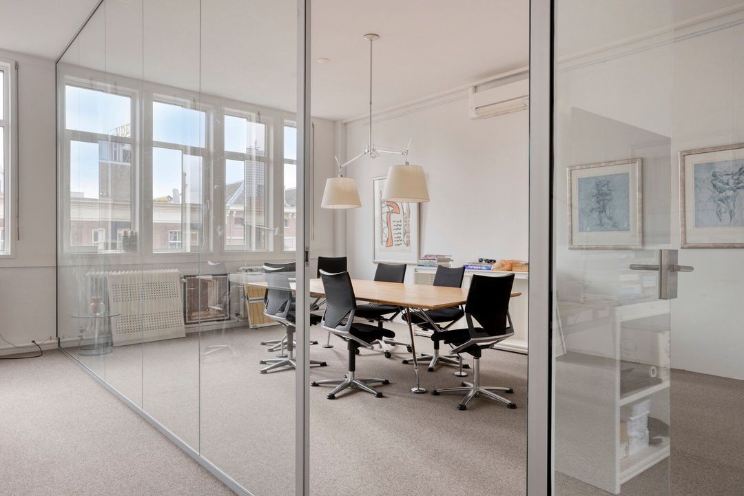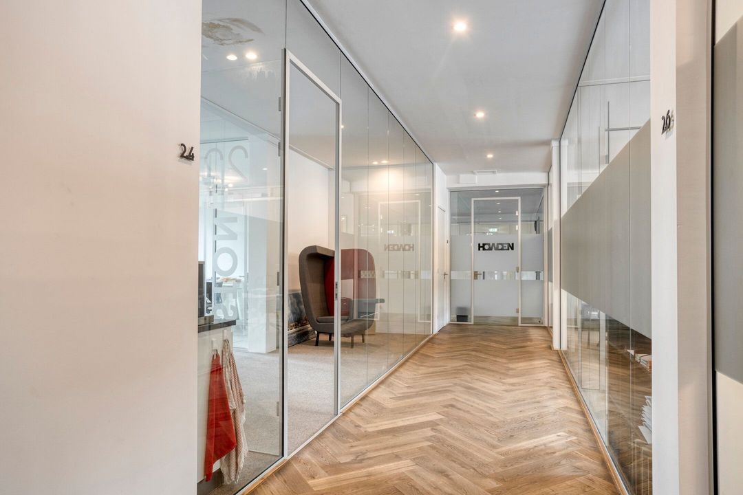 De indeling bestaat uit een open werkruimte met een separate vergaderruimte, ideaal voor overleg of ontvangst van relaties. De ruimte is modern afgewerkt met glazen scheidingswanden, strakke verlichting en een hoogwaardige vloerafwerking. Het pand beschikt over een representatieve entree met lift en trappenhuis, waarmee het geheel een verzorgde en professionele uitstraling biedt.