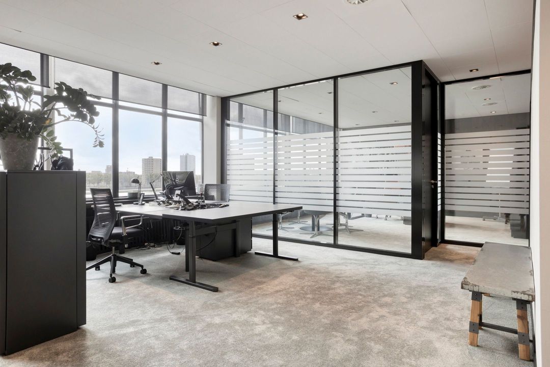 De kantoorruimte is modern ingericht met hoogwaardige materialen en beschikt over een ruim eigen terras, waar men in alle rust kan genieten van het uitzicht over de rivier en de stad. De indeling is praktisch en licht, met grote raampartijen die zorgen voor een natuurlijke daglichttoetreding. Het meubilair is eventueel ter overname, wat het object direct instapklaar maakt voor een nieuwe gebruiker.